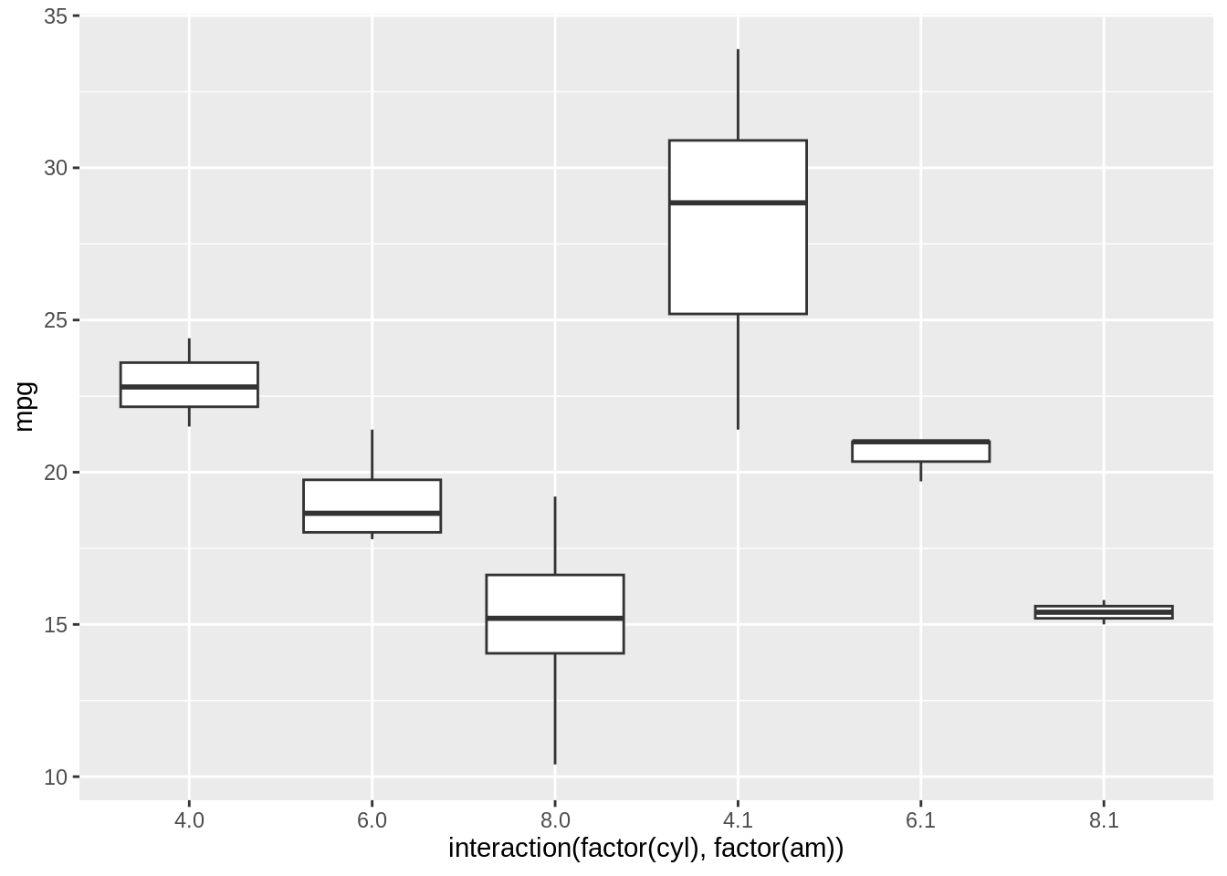 It’s also possible to make box plots for a combination of two grouping variables, with the interaction() function: