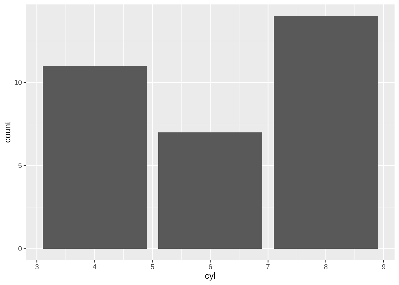 ggplot(mtcars, aes(x = cyl)) +
